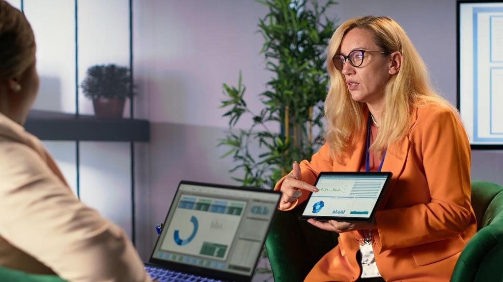 Skalieren Sie Farben nach Zielerreichung, heben Sie Ausreißer hervor und nutzen Sie Datenbalken für Dichten. Das Auge findet sofort Prioritäten, wodurch Gespräche schneller auf Lösungen zusteuern statt auf Ursachenforschung.